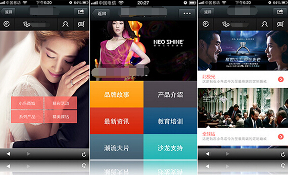 2、 微網(wǎng)站的建立,企業(yè)就不需要頻繁地在微信上發(fā)布產(chǎn)品信息,只需要通過(guò)網(wǎng)站對(duì)產(chǎn)品進(jìn)行更新就能讓用戶快速地了解到更全面的最新消息,企業(yè)展示產(chǎn)品的方式也更加自由和開(kāi)放。同時(shí),微網(wǎng)站可建立各種交易模式,通過(guò)微網(wǎng)站讓交易途徑變得廣泛,解決客戶擔(dān)心的資金安全問(wèn)題。